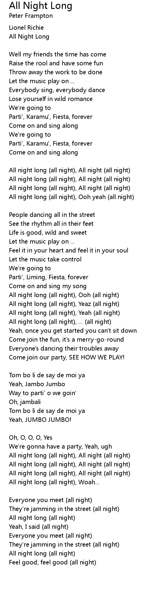 All night long (all night), All night (all night) |