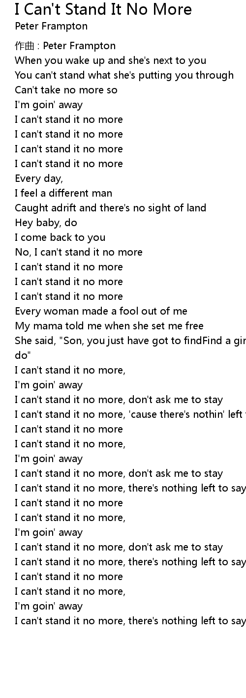 | I can' t stand it no more | |