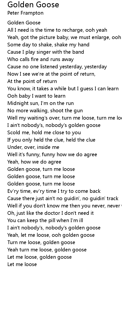 Yeah turn me loose, golden goose |