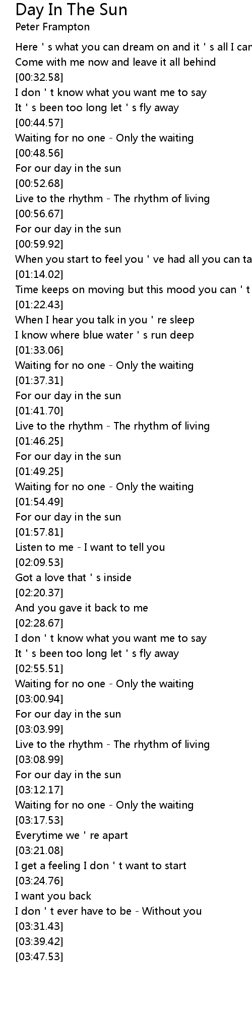 | [00:49.44] | For our day in the sun |