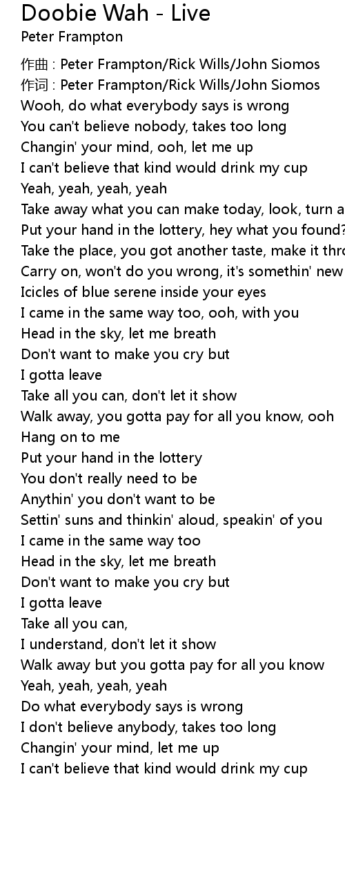 | 作词 : Peter Frampton/Rick Wills/John Siomos | |