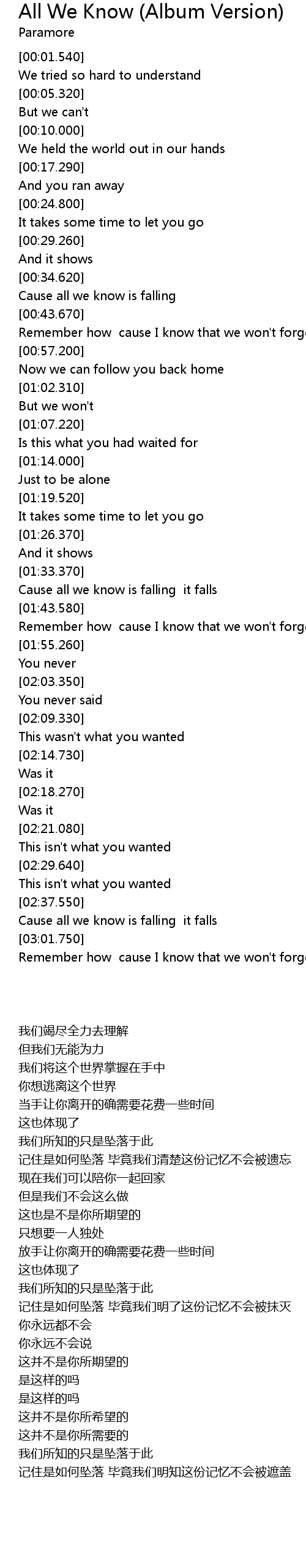 All We Know (Album Version) Lyrics