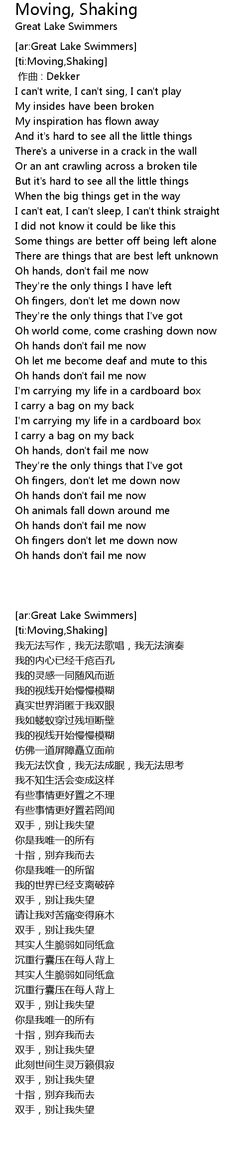 | [04:50.23] | Oh hands don' t fail me now |