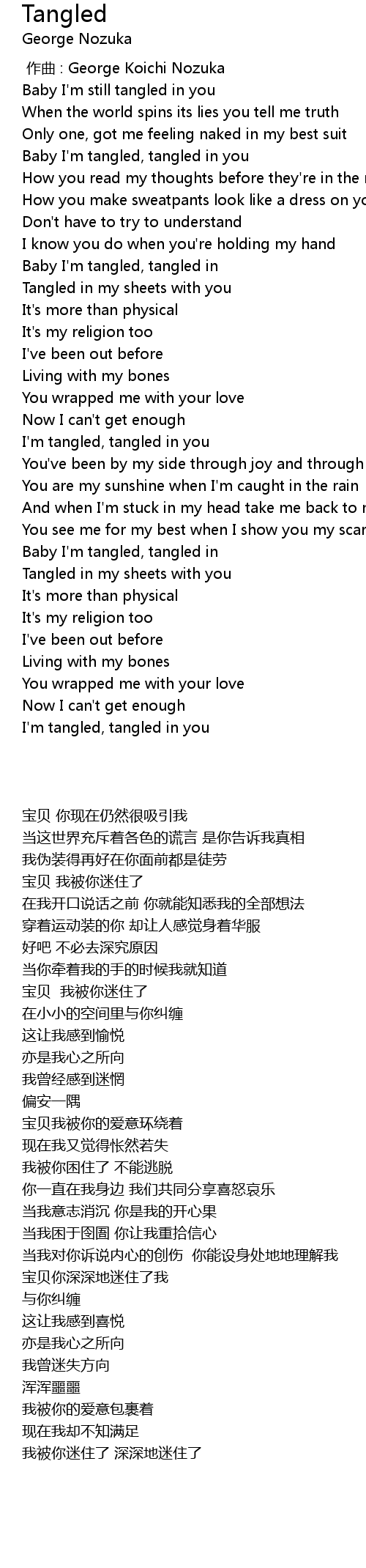 | [00:59.104] | Baby I'm tangled, tangled in |