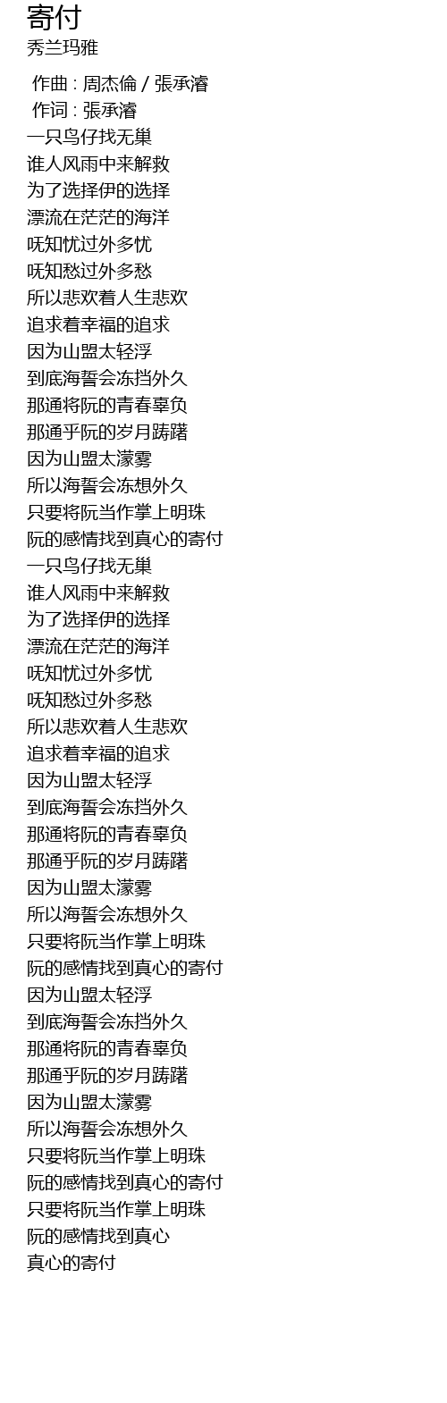 | [04:19.550] | 阮的感情找到真心的寄付 |