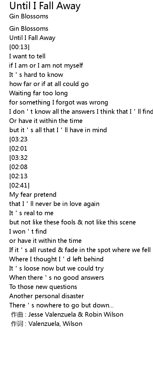 | [03:08][02:13][01:10] | Until I fall away... |