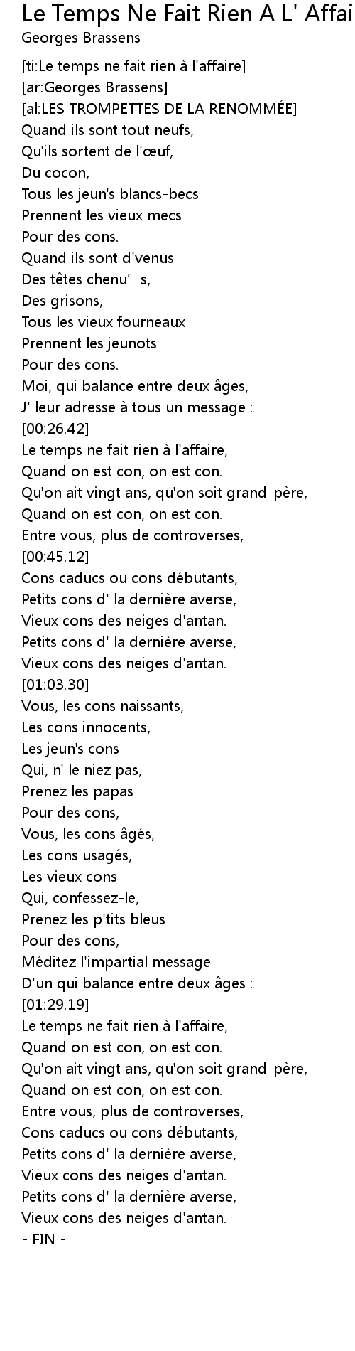 | [ti:Le temps ne fait rien à l'affaire] | |