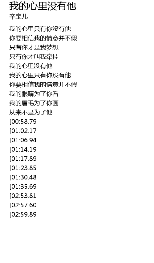 | [02:41.72][01:30.48] | 我的心里只有你没有他 |