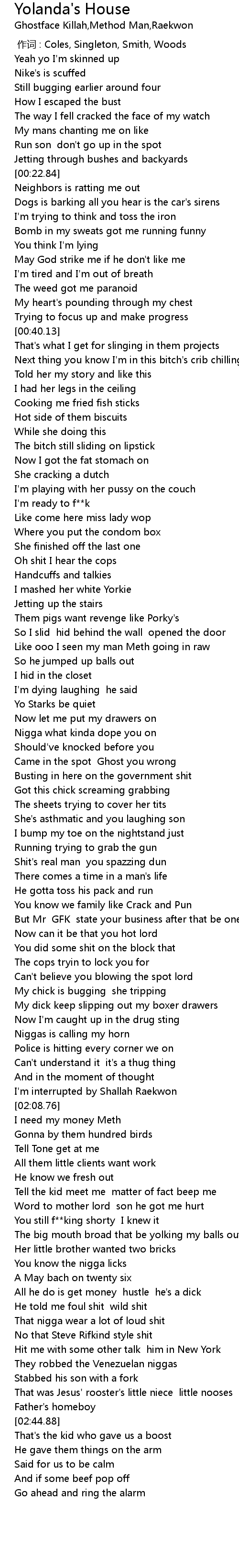 | [02:20.23] | You still f king shorty I knew it |
