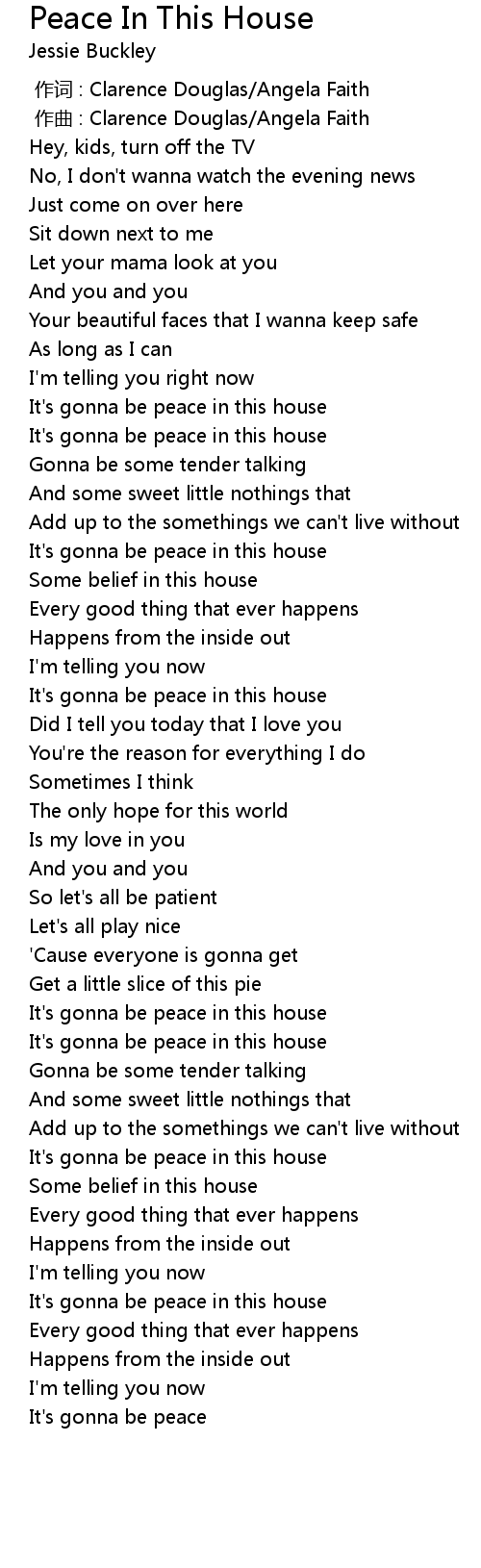 | Song | Peace In This House |