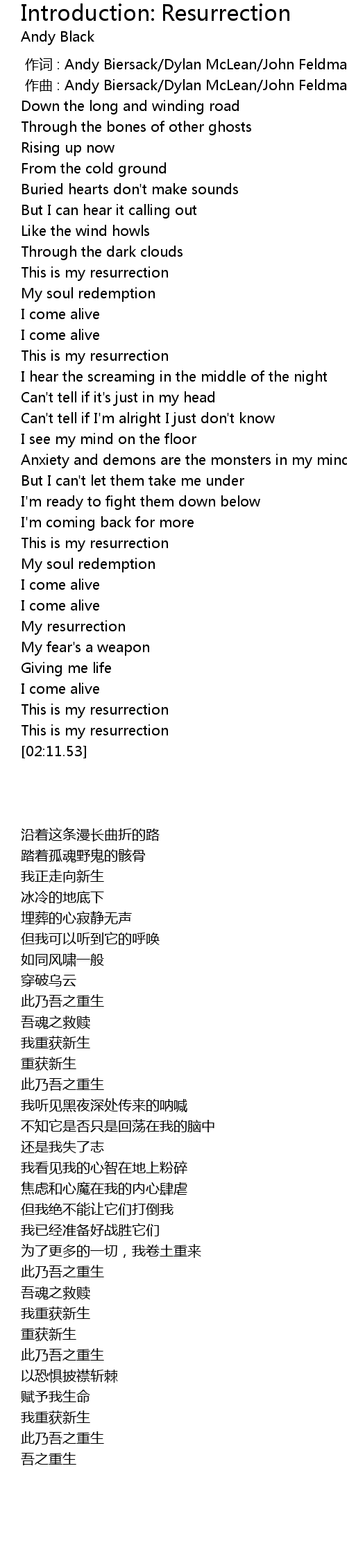 | [00:39.57] | This is my resurrection |