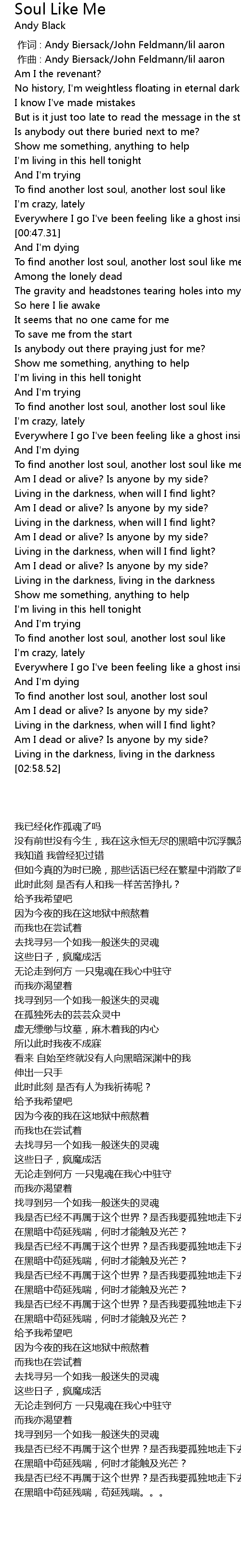 | [00:53.60] | To find another lost soul, another lost soul like me |