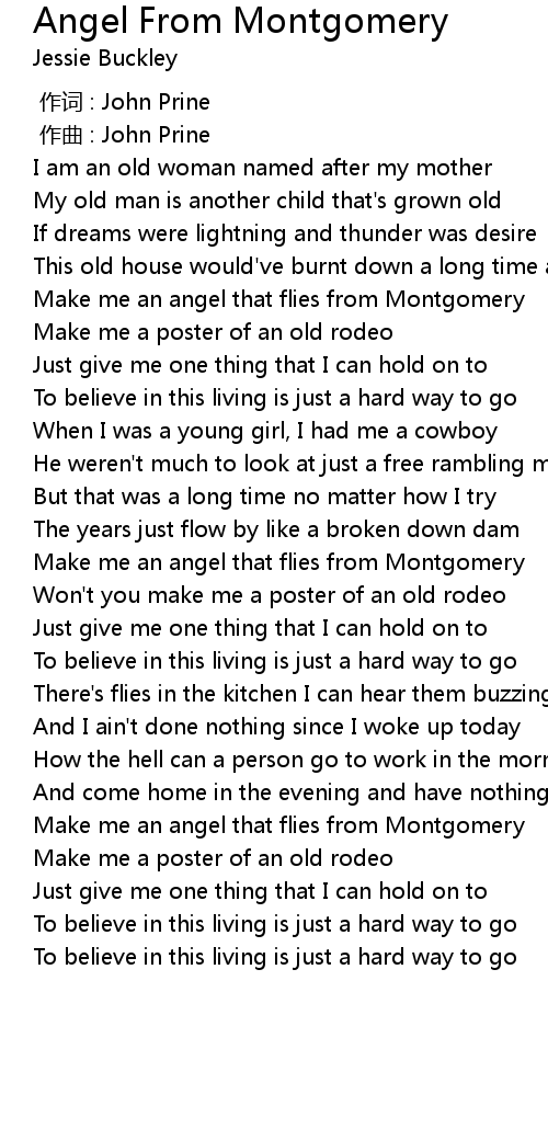 | [01:55.51] | Make me an angel that flies from Montgomery |