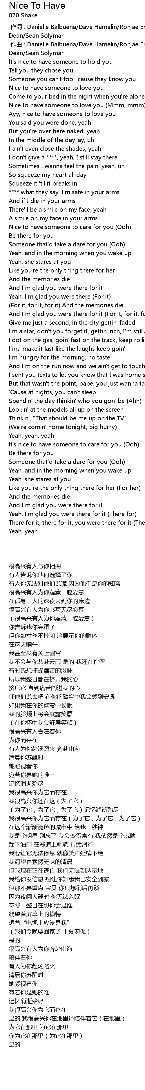 | Song | Nice To Have |