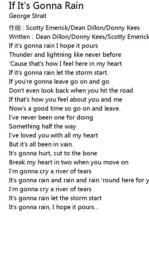 | It' s gonna rain and rain and rain ' round here for years. | |