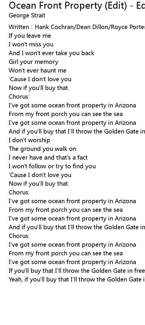 | Song | Ocean Front Property (Edit) - Edit |