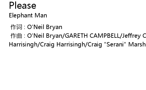 | [00:00.000] | 作曲 : O'Neil Bryan/GARETH CAMPBELL/Jeffrey Campbell/David Harrisingh/Craig Harrisingh/Craig "Serani" Marsh |