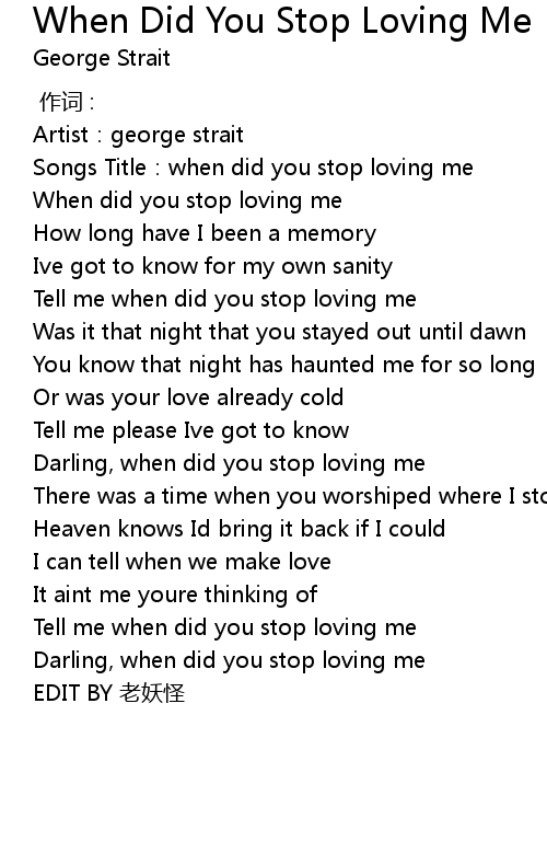 | [00:07.43] | Songs Title: when did you stop loving me |