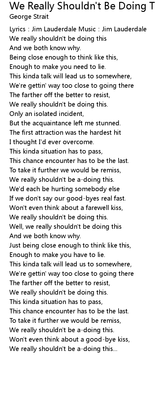 | Song | We Really Shouldn't Be Doing This |