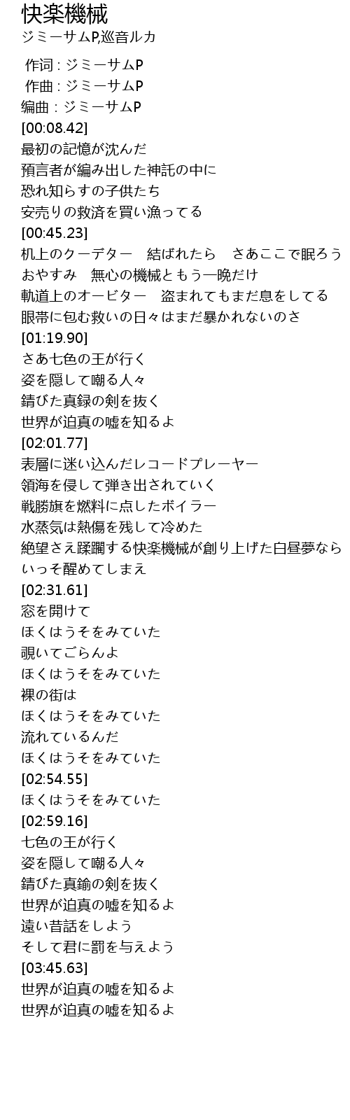 | [02:22.98] | 絶望さえ蹂躙する快楽機械が創り上げた白昼夢なら |
