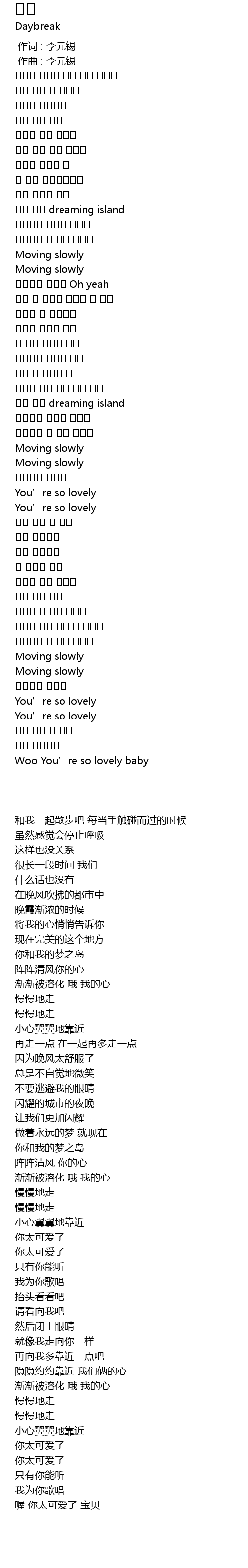 | [00:00.000] | 作词 : 李元锡 |