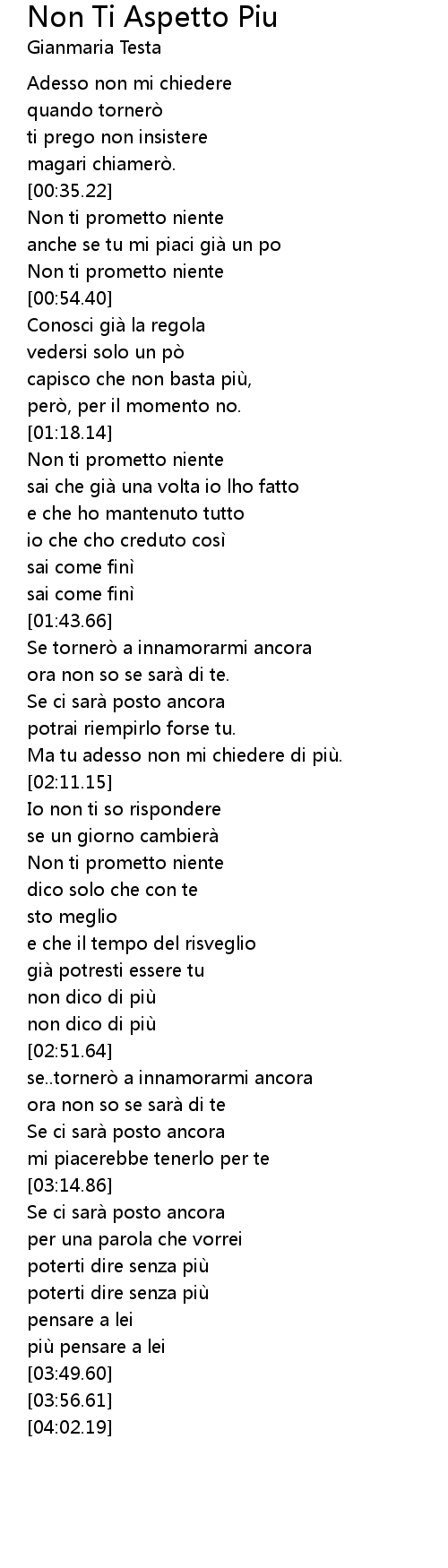 | [02:05.67] | Ma tu adesso non mi chiedere di più. |
