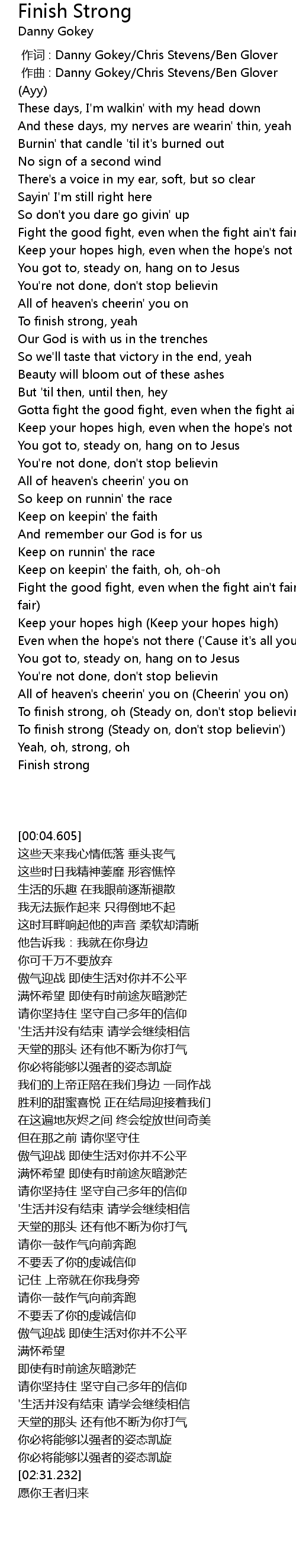 | [02:22.833] | To finish strong, oh (Steady on, don't stop believin') |