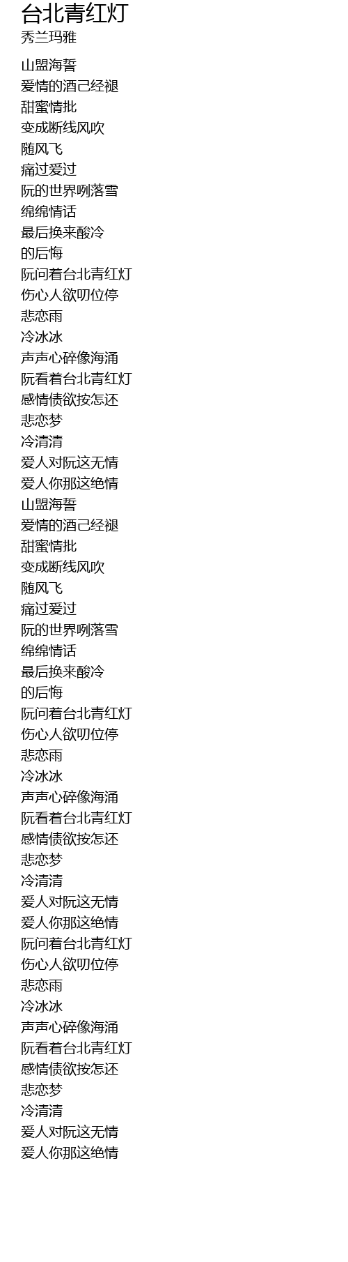 | [01:11.130] | ruǎn wèn zhe tái běi qīng hóng dēng |