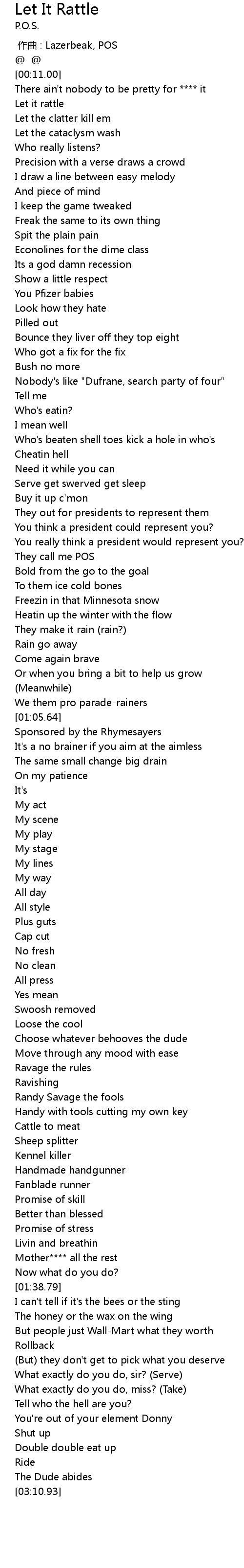 | [00:00.00] | 作曲 : Lazerbeak, POS |