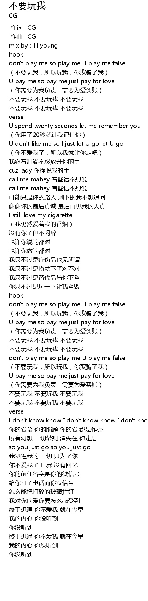 | [00:20.564] | (不要玩我,所以玩我,你欺骗了我) |