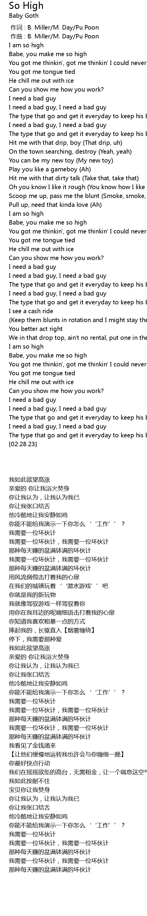 | [01:28.75] | I need a bad guy, I need a bad guy |
