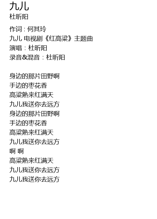 | jiǔ ér wǒ sòng nǐ qù yuǎn fāng | |