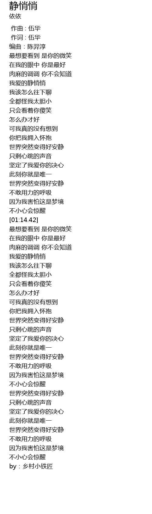 | [01:28.23] | 我爱的静悄悄 |
