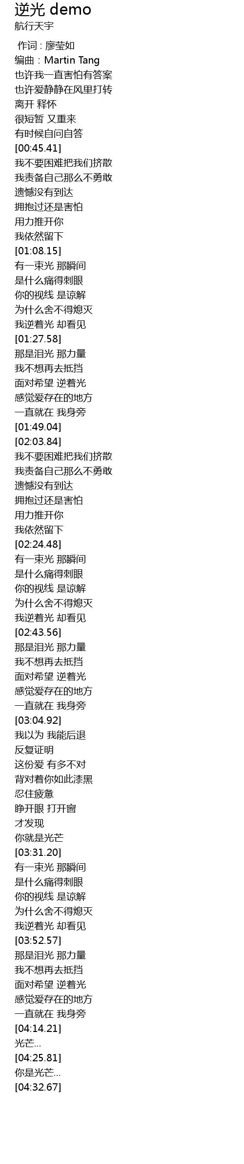 | [03:46.38] | wǒ nì zhe guāng què kàn jiàn |