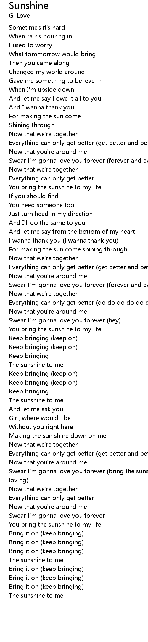 You bring the sunshine to my life |
