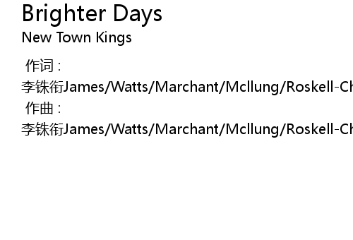 | [00:00.000] | 作词 : 李铢衔James/Watts/Marchant/Mcllung/Roskell-Cheale/Maynard/Band |