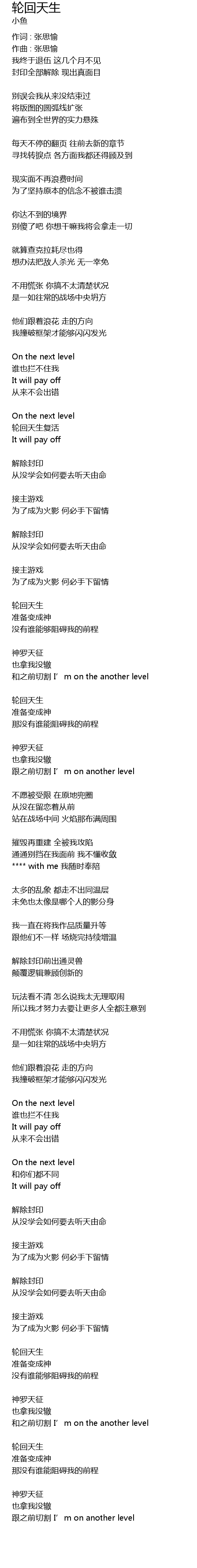 | 和之前切割 I’m on the another level | |
