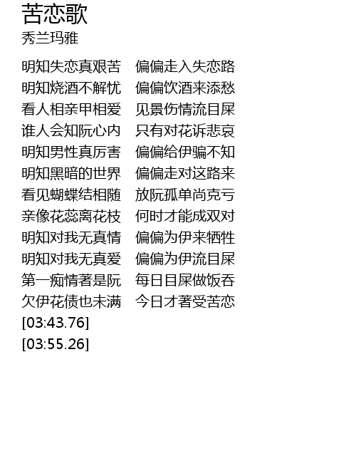 | [00:28.93] | 明知失恋真艰苦 偏偏走入失恋路 |