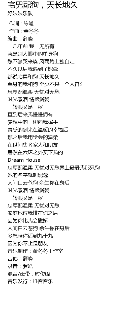 | [00:33.55] | 都说宅男和狗 天长地久 |
