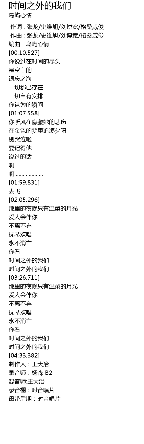 | [04:22.476] | 时间之外的我们 |