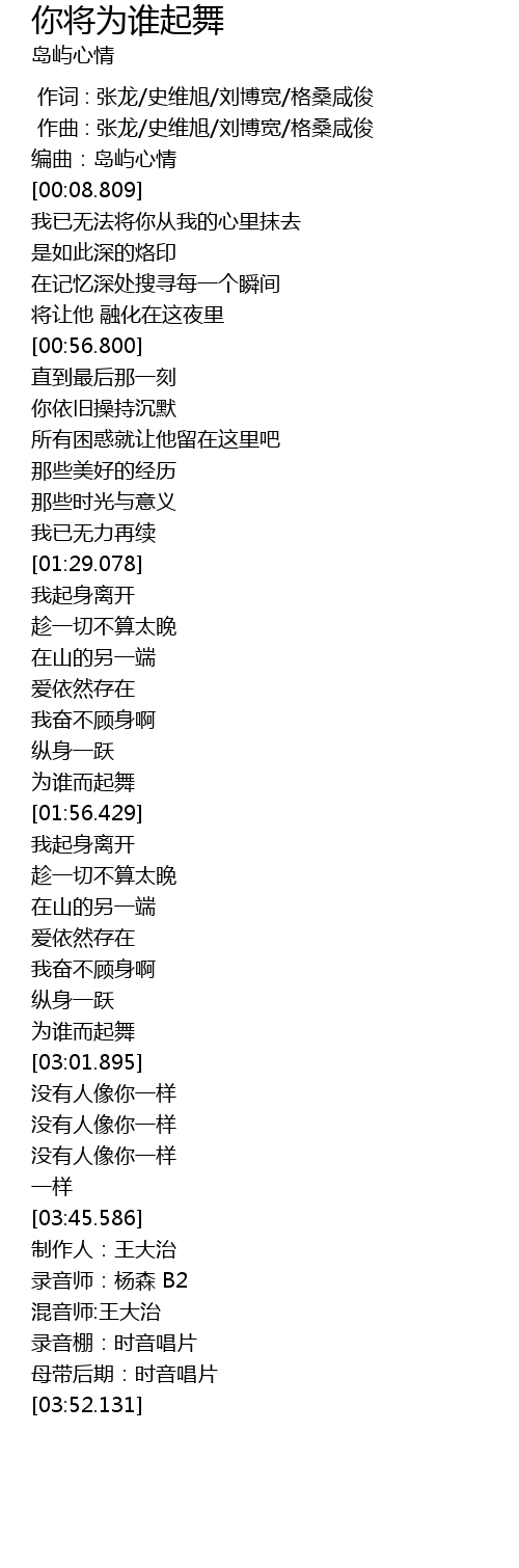| [02:55.932] | 为谁而起舞 |