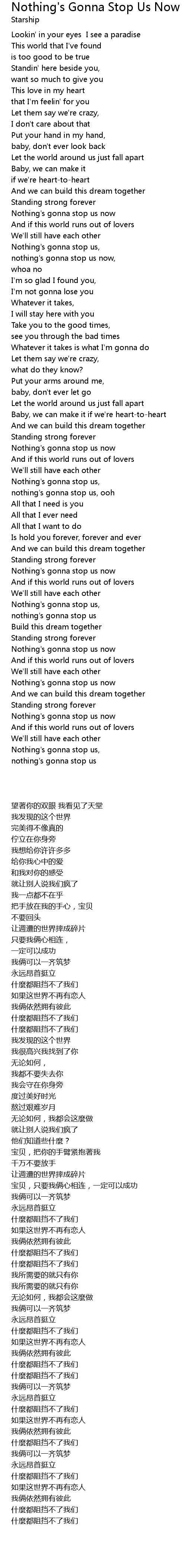 Nothing's gonna stop us now |