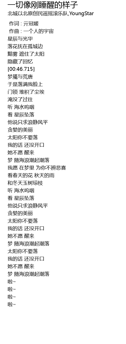 | [00:01.000] | 作曲 : 一个人的宇宙 |