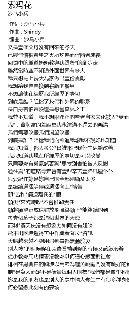 | [00:00.000] | 作词 : 沙马小兵 |