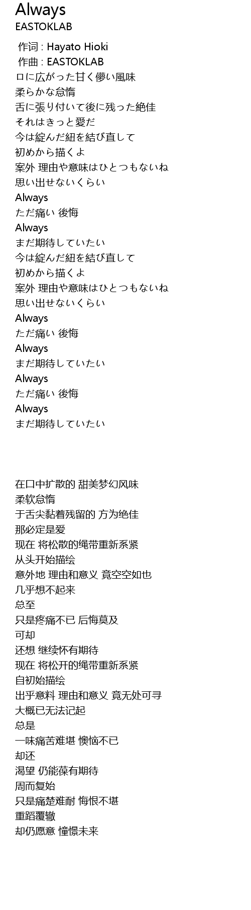 | [00:00.000] | zuò cí : Hayato Hioki |