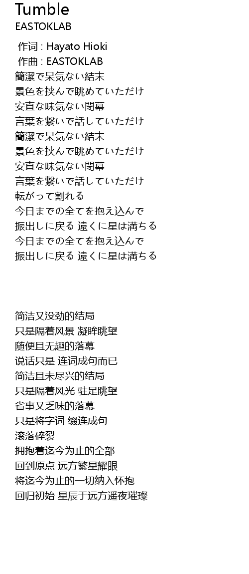 | [00:00.000] | zuò cí : Hayato Hioki |
