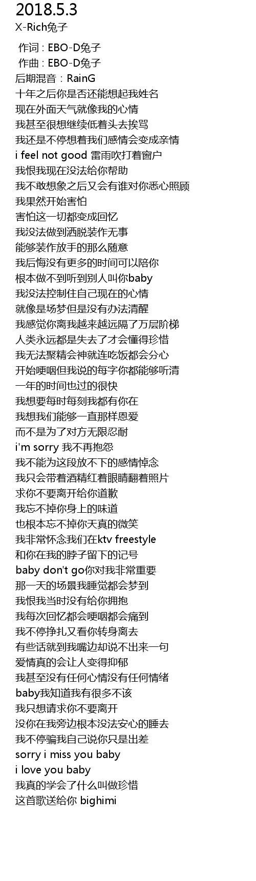| [00:00.000] | 作词 : EBO-D兔子 |