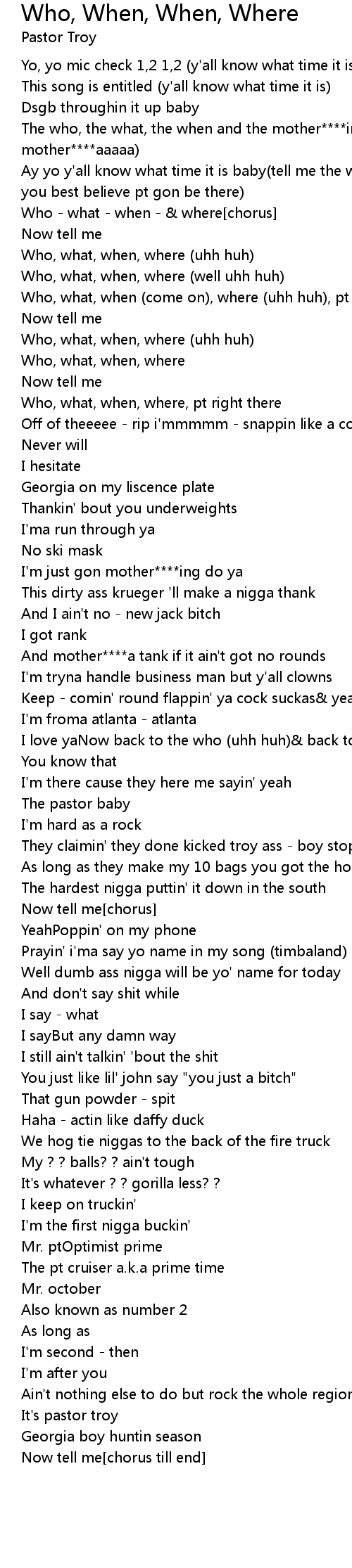 The who, the what, the when and the mother****ing where(dsgb off in this mother****aaaaa) |