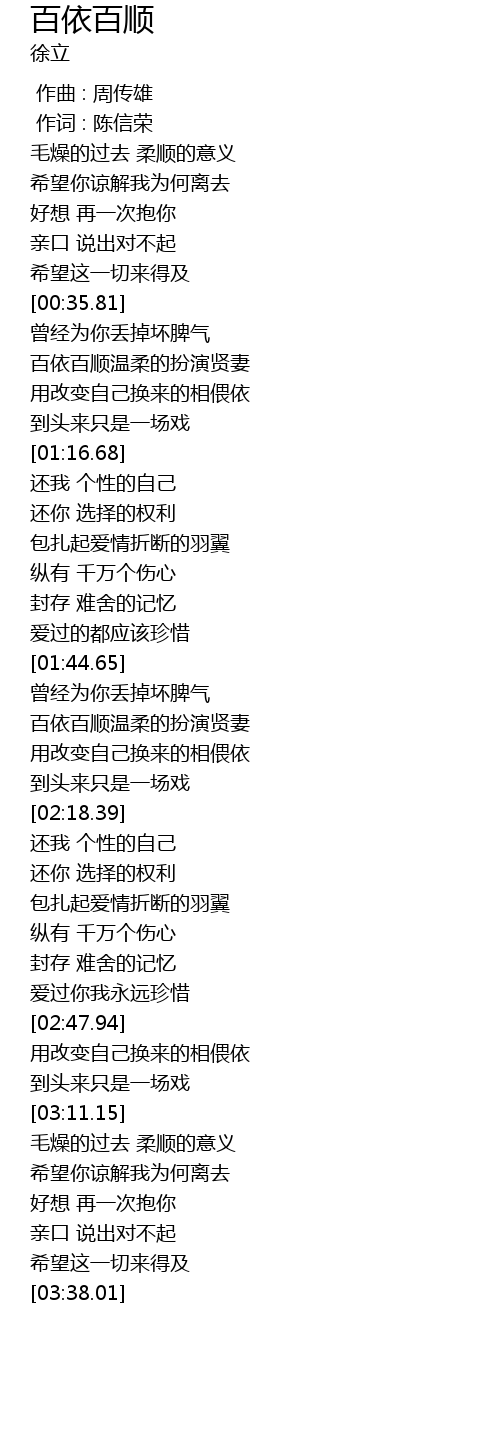 | [01:59.25] | 百依百顺温柔的扮演贤妻 |