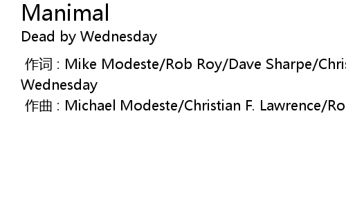 | [00:00.000] | 作词 : Mike Modeste/Rob Roy/Dave Sharpe/Christian Lawrence/Dead by Wednesday |